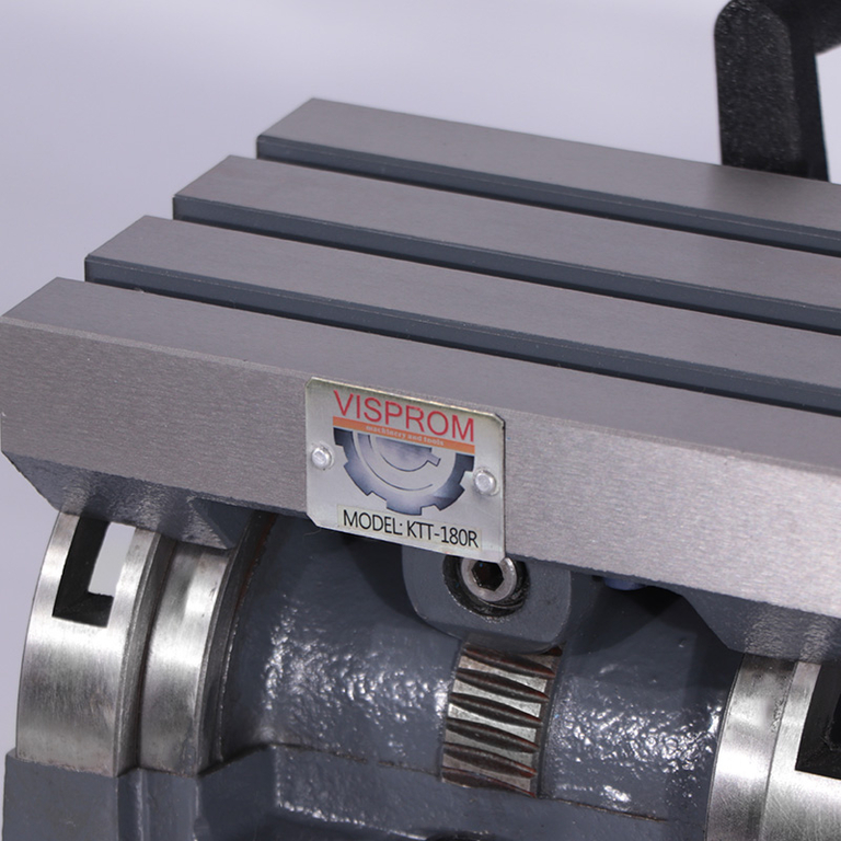 Координатный поворотный наклоняемый стол с ручным приводом KTT-180R предназначен для использования в качестве дополнительной оснастки на универсальных фрезерных и сверлильных станках. Использование стола позволяет успешно выполнять такие операции как фрезерование, сверление и обработка отверстий, фрезерование пазов и уступов, и других элементов детали под углом от 0° до 45°.