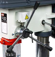 К основным особенностям представленного типа сверлильных станков можно отнести удлиненный ход шпинделя, а также наличие переключателя основных режимов (режим сверления — режим нарезания резьбы), который делает работу на станке более удобной. Кроме того, станок оснащен шестиполюсным электродвигателем повышенной мощности.