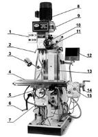 Фрезерный станок FHV-50VD состоит из следующих основных узлов: станина, шпиндельная головка, электродвигатель привода вертикального шпинделя, коробка скоростей вертикального шпинделя, стол, основание и консоль.