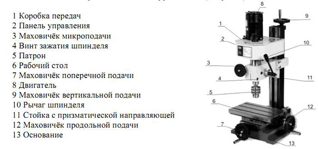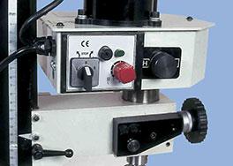 В данной модели предусмотрена тонкая подача шпинделя и регулировка глубины сверления. На станке можно выполнять сверление, фрезерование и другие операции обработки осевым режущим инструментом.