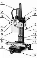 - Зажим ограничителя вертикального перемещения фрезерной головки.