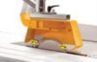 Длинная алюминиевая каретка на закалённых стальных направляющих и широкий поперечный стол позволяют устанавливать и перемещать относительно пильного механизма листы большого формата. Пильный механизм включает в себя два режущих узла: основную и подрезную пилы. Подрезная пила имеет попутное вращение относительно подачи заготовки и за счёт предварительно реза позволяет раскраивать ламинированные листы ДСП без появления сколов.