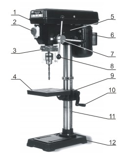 - Можно устанавливать нужную глубину для высверливания отверстий. Для того, чтобы поднимать стол или опускать его с целью улучшения эффективности работы, он оборудован специальным механизмом.